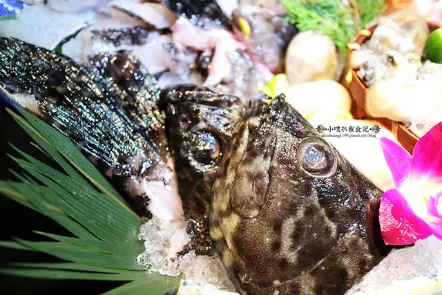 主秀終於出場,以新鮮現宰活石斑舖盤,另有:北海道生食級干貝.文蛤.東石鮮蚵.鎖管.阿根廷天使紅蝦.本地草蝦