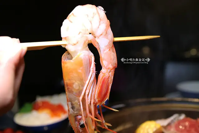 本地草蝦,蝦隻有用竹籤穿起,所以拿取方便,草蝦的肉質也很Q嫩,最重要涮一下,就即刻撈起,口感很鮮甜又具滋味!!!