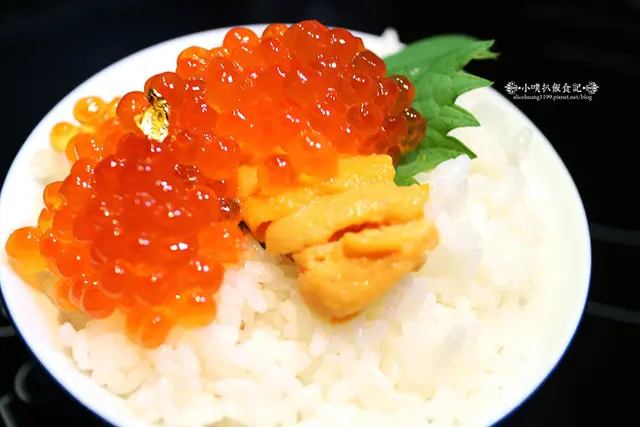 在Q彈香甜的米飯上,覆蓋著滿滿的鮭魚卵,鮭魚軟在口中"啵啵"的化開,新鮮又具美味,海膽,新鮮無比,同時,沒有腥味,鮮甜順口,搭配米飯,提升口感的層次感