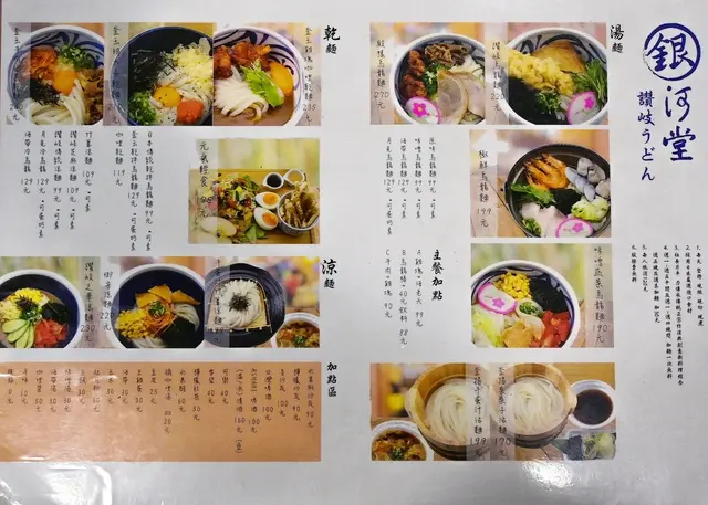 銀河堂讚岐烏龍麵菜單