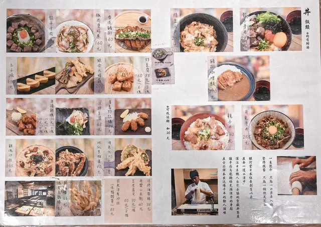 店內販售各式烏龍麵、沾麵、元氣輕食、冷烏龍麵 、涼麵、丼飯、小菜、飲料等,主餐價格99元起跳,還可以升級成套餐,是許多上班族的首選。
