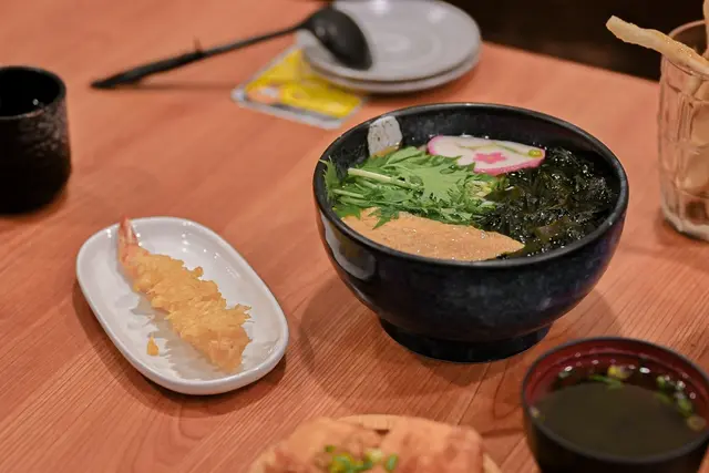 店內招牌,使用店內熱賣的烏龍麵配上炸蝦,配的是熱湯,很適合當天有點冷的天氣。
