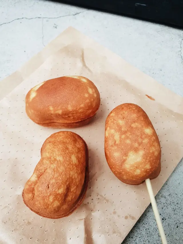 其實這一份一共有四顆,剛拿到手熱呼熱呼的又超香,V受不了誘惑就把我整袋的雞蛋糕搶了過去,直接嗑了一顆(哭)。