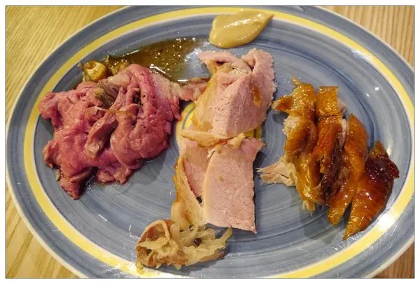 像是牛排、豬腳、火腿這類的肉品~都有師傅會專門切給客人吃