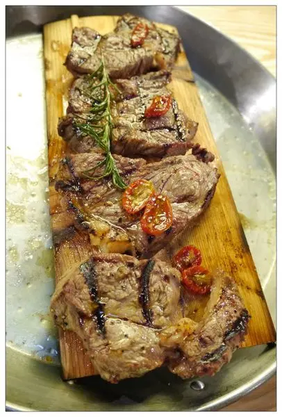 這次用餐只有四個人~~我們就選擇了板烤美國安格斯肋眼牛排8oz(價值NT900)