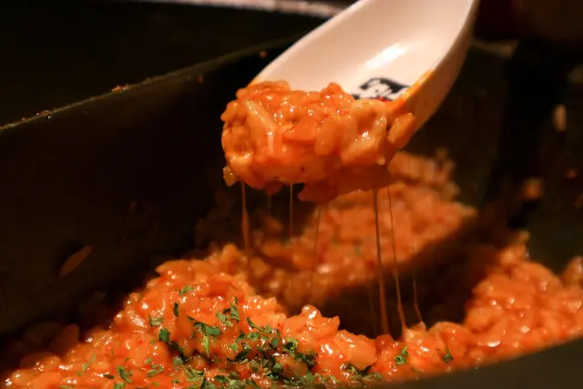 ▲每挖一口燉飯都有濃濃牽絲起司,
