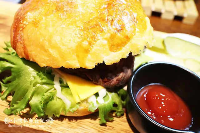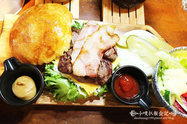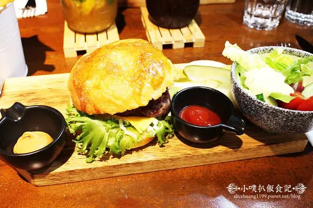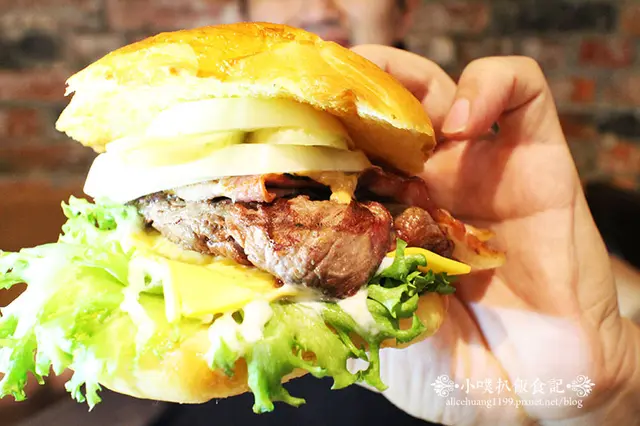 牛排配上新鮮蔬菜.起司.洋蔥.酸黃瓜.培根及軟嫩的漢堡麵包,感覺滋味無窮啊!!口感豐富,滋味美味^^
