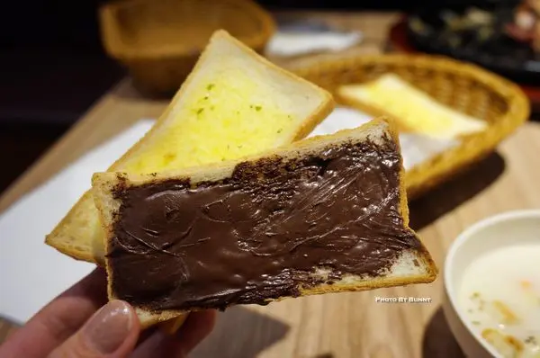 吐司的部分提供巧克力、香蒜、花生三種口味,