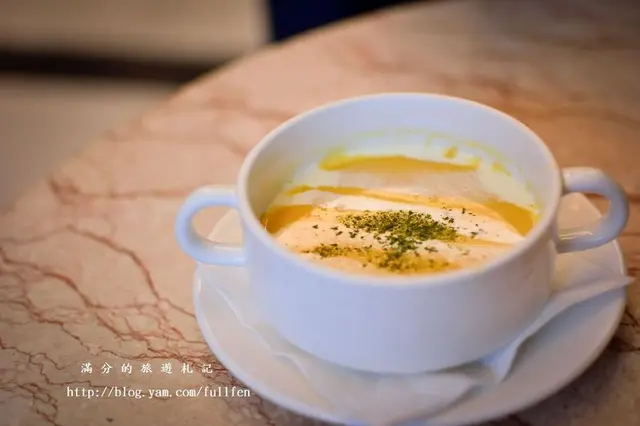 南瓜濃湯,非常香濃可口,這個湯品還讓滿分& Kevin 一直搶著要喝呢!!