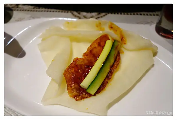 有別於之前吃的烤鴨,多了酒香及橙香的味道