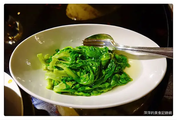 隨鍋附上了季節蔬菜「茼蒿」,已先燙過了