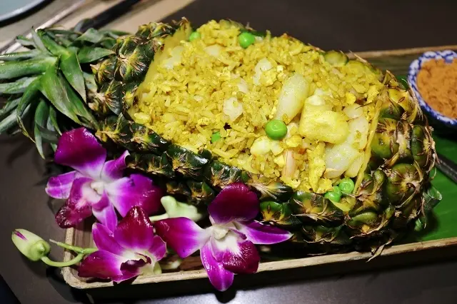 泰集有幾道菜色都使用蔬果盅,鳳梨炒飯就是其一,
