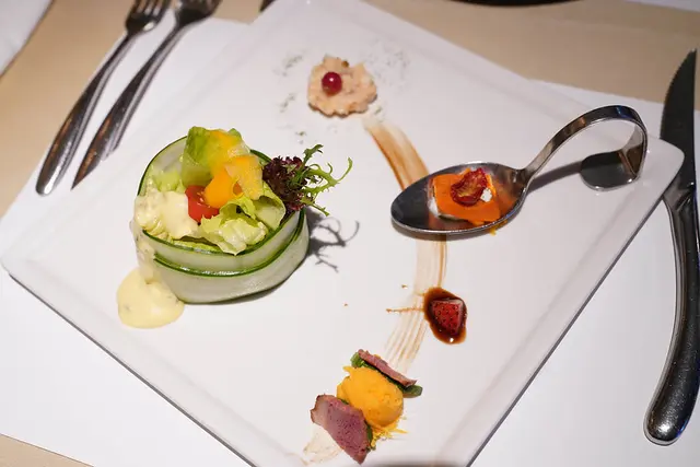 隨著親切的服務人員領我進座位,舒適的昏黃燈光,優雅的背景音樂,入座後,貼心的撕開手巾,細細述說著餐點與點餐方式,有排餐、有海鮮、還有德國豬腳!好難抉擇!給我們一點時間討論討論。