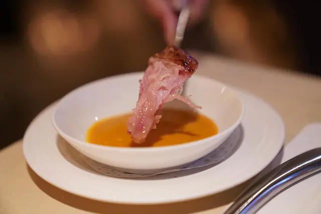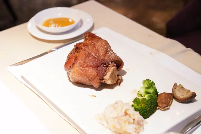 服務生說!我知道妳們要拍照!拍好我來幫忙去骨,真的是好貼心的舉動,膠質滿滿的豬腳,嘴唇吃的黏吱吱,阿!一旁的蜂蜜芥末醬少量沾取,每一次的咀嚼,都是美味的散發。