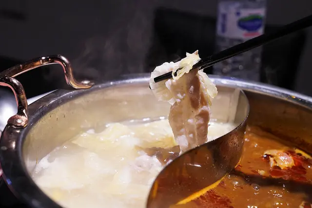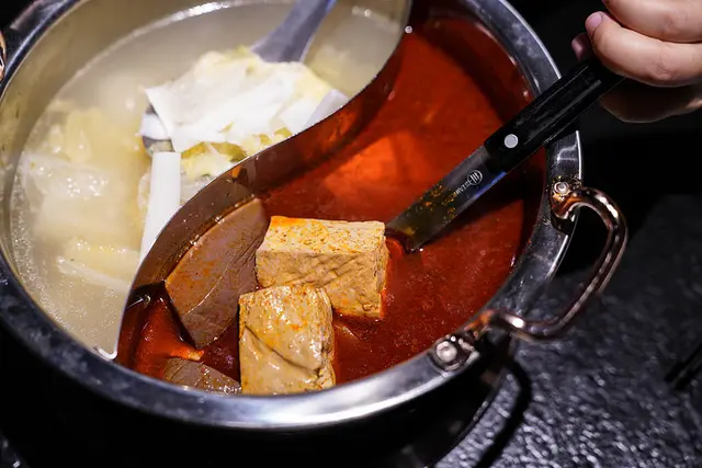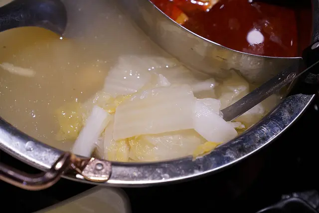 湯底的部分有有麻辣、酸白菜、清湯三種選擇,選擇鴛鴦鍋的話每桌加$100