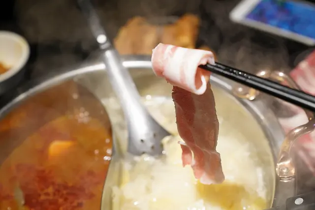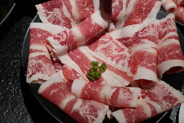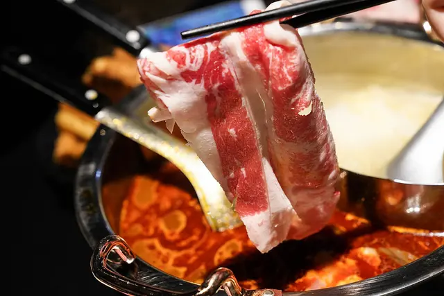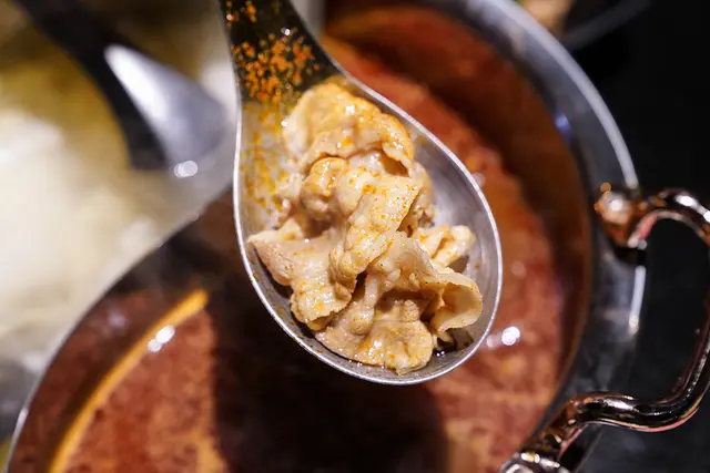 夾起厚大的霜降牛,柔軟的身軀,下鍋莫屬三至五秒,待粉嫩的顏色消失後,即可撈起來!牛肉片嫩滑和甘香在嘴裡如草原似的綻放ㄡ