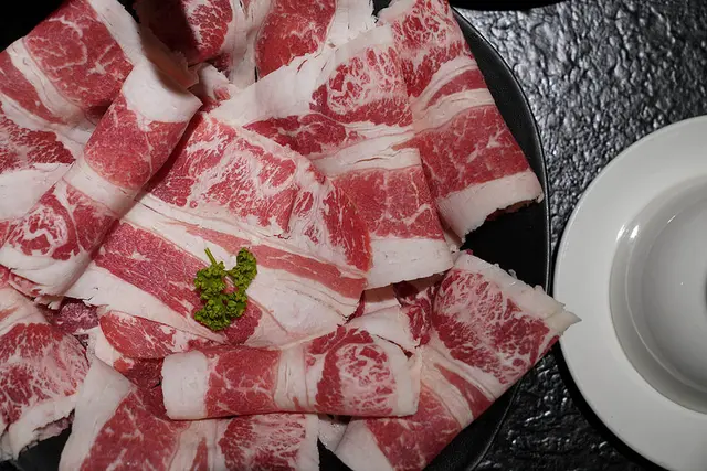 比例完美的霜降牛,典雅的紋理分布,我想待會下鍋,大概三至五秒!那軟嫩的質地,收進嘴裡的滋味,可想而知。