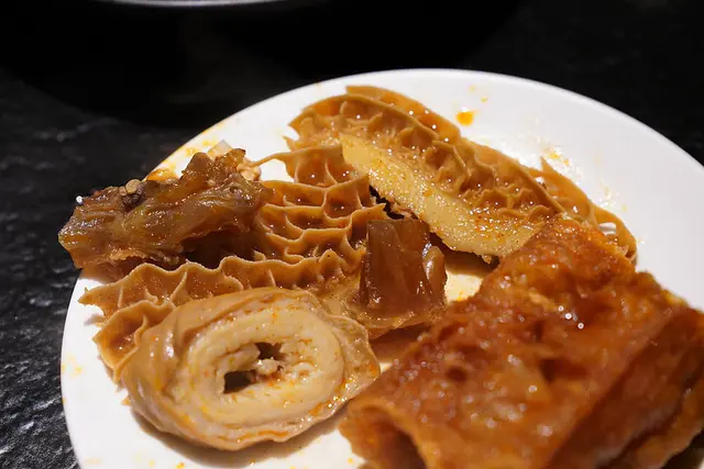 牛筋可相當彈牙脆口,然而瞧瞧這牛肚,蜂巢肚可吸了滿滿的麻辣湯汁,鮮香味十足!大腸頭絲毫也不遜色,口感相當有勁。