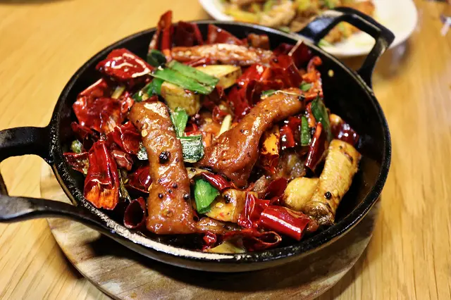 滿滿的辣椒裡藏了肥腸和杏鮑菇,