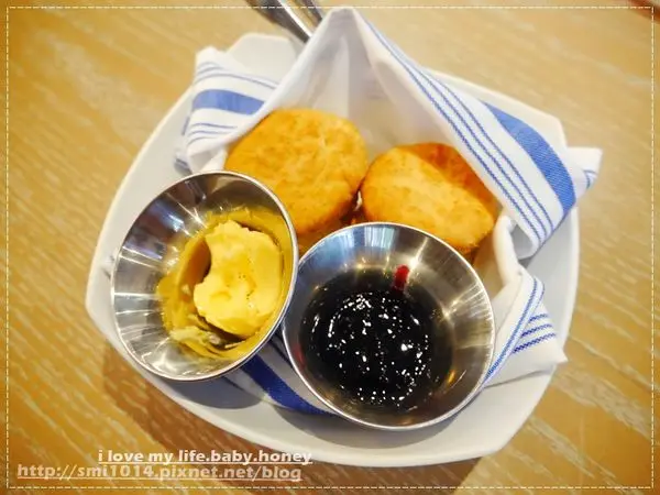 以前對比司吉的印象就停留在肯德基賣的,沒想到這裡也改良了乾乾的比司吉喔