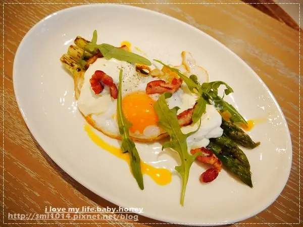 蘆筍沾著半熟蛋液一起吃,時而跑出培根的鹹味,整個美味度破表
