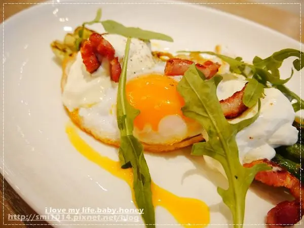 半熟鴨蛋配上炒培根有種早午餐的感覺
