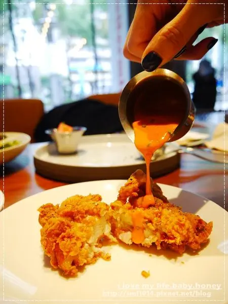 最後裹上特製的南方炸雞粉酥炸,外皮薄脆,一口咬下還會噴汁呢