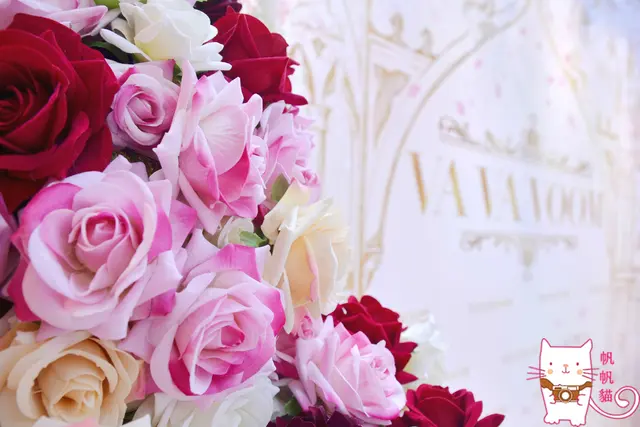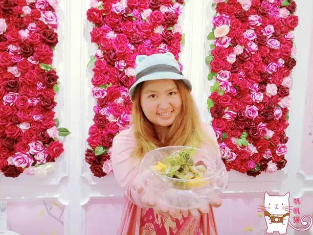 粉色拍照看板旁是花朵堆砌成的蛋糕,總覺得應該要穿自己最鍾愛的小禮服或洋裝來拍拍