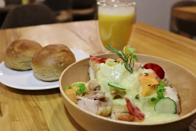 餐點換成沙拉、巧巴達、燉菜,巧巴達的口味看起來就很多生菜(害怕),