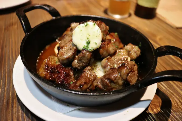 美國牛肋條/特製醬汁/自製蒜味奶油/紫洋蔥