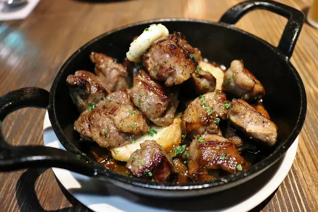 必點 牛肋山丘、牛小排沙拉、培根蛋黃義大利麵、吉拿棒 這四道,