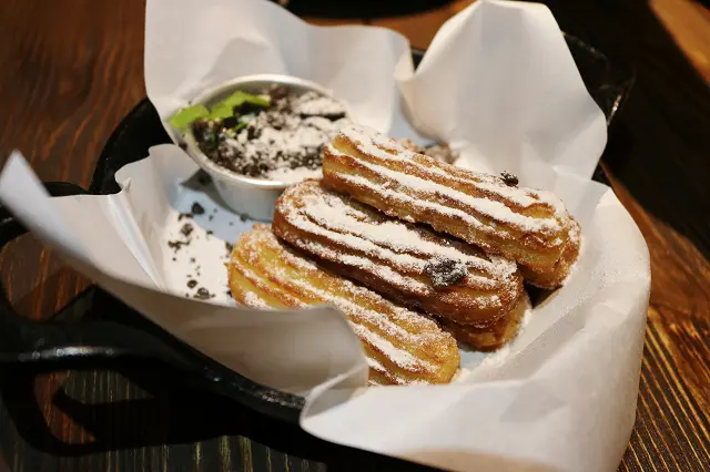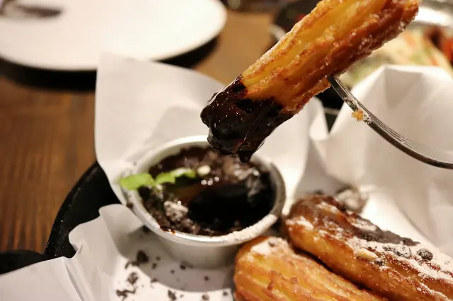 快撐死了當機立斷把吃不完的燉飯打包,把空間留給我最愛的吉拿棒~