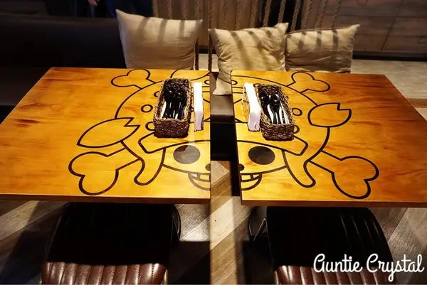 海賊王餐廳的風格打造的跟航海船的造型一樣,有船纜繩、風帆,牆上還有船舵,
