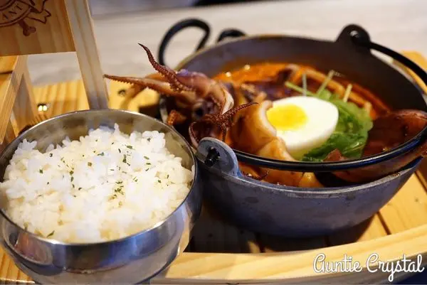 這真的是超級下飯的一道菜啦!裡頭還有辣炒年糕,甜甜辣辣的,
