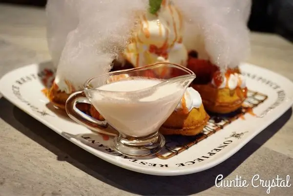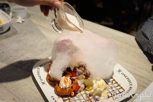 真的是造型非常特別的甜點,棉花糖真的跟雲朵一樣浮在鬆餅上頭,