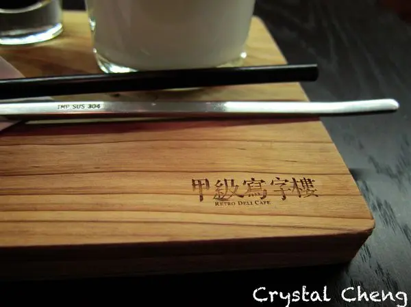 飲料放在木盤上更顯得有質感,邊邊還刻上甲級寫字樓的店名。