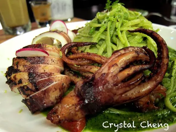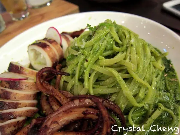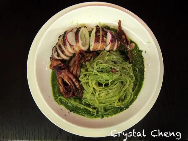 新鮮青醬義大利麵佐炭烤透抽 NT.280