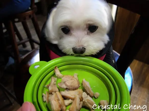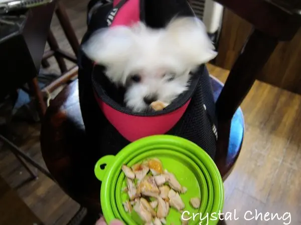 因為帶著毛小孩來用餐,店家還很貼心的送上水,更厲害的還有送烤雞腿肉,