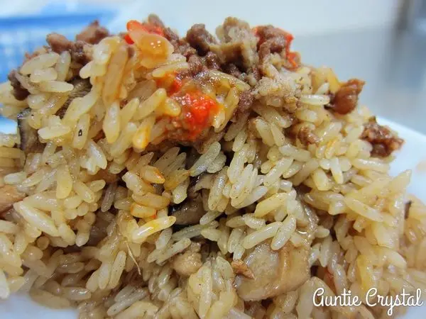 上頭還淋上鹹香肉燥,自己是還會再加一點甜辣醬,吃起來帶著油蔥香、蝦米香,
