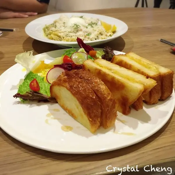 使用的是吳寶春的脆皮吐司,淋上一點台灣龍眼蜜,不會太甜,
