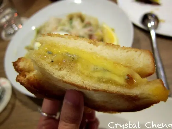 這蜂蜜史帝爾頓奶油脆煎三明治,鹹鹹甜甜的,外皮用奶油煎得酥脆,