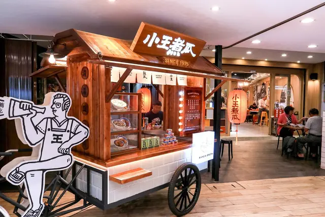 SINCE1975小王煮瓜全新翻修後讓人眼睛為之一亮,裡裡外外的空間給顧客更為舒適的明亮用餐空間,門口的移動式台車讓外觀更為豐富有趣。