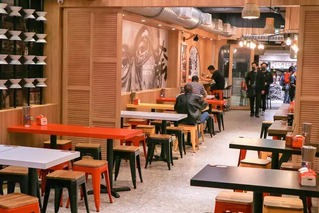 小王煮瓜座位數頗多,鮮明活潑的色調日上木質色調及洗石子地板,都將台灣傳統小吃店特色融合,