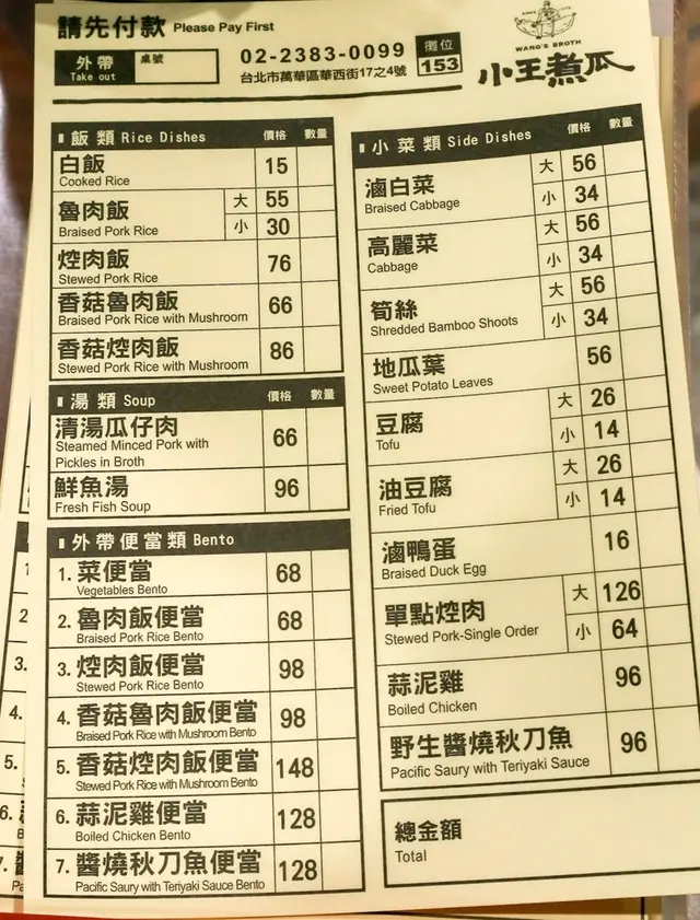 小王煮瓜菜單有分內用與外帶,差別在於外帶多了便當可選擇。