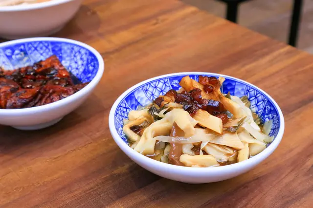 淋上小王王牌魯肉汁,筍絲微酸脆爽,很開胃。