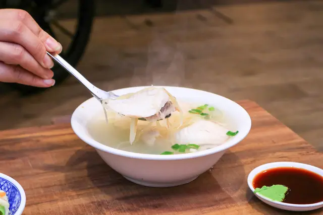 湯頭滿滿嫩口薑絲,湯頭滾燙清甜入喉相當溫暖舒服,