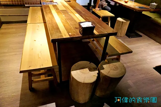 阿偉發現有兩個”原木”椅子,真的是兩段樹木的原木,當然已經處理過,坐起來很光滑的。