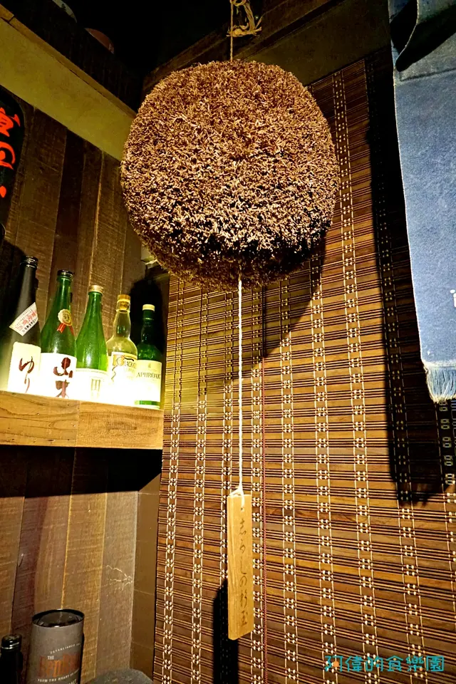 這個球叫做”杉玉”。這球是用杉樹得枝葉組成,本來是綠色的,通常掛在日本的清酒酒造的門口,表示新酒剛榨好。當兩三個月後,等它萎凋成這樣的咖啡色時,就代表新酒已經熟成,可以販售了。