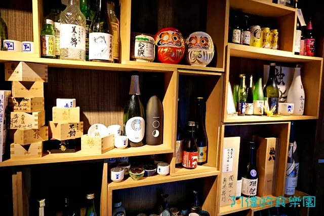 回到門口進來的廊道,一側的牆櫃上放滿了各式清酒瓶。