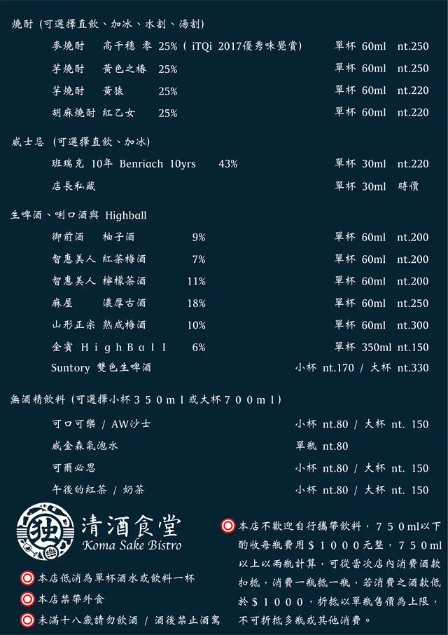以下是酒類menu…